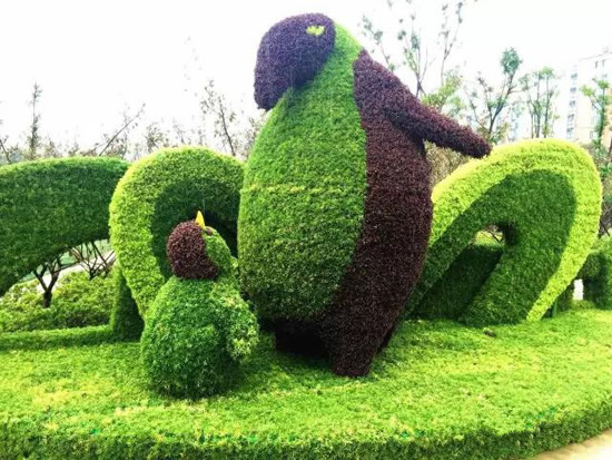 仿真綠雕廠家的綠雕規劃首要包括主題構思、鋼架結構規劃、顏色規劃、植物的挑選及調配等內容。其中,鋼架結構規劃及植物的挑選非常重要。除了鋼架結構外,規劃師需要了解植物特性,既要確保花期交替的合理運用,又要確保株型高低的合理調配,使著作在展現的初、中、晚階段,伴隨著植物的生長、開花、變色等天然習性,展現出十分意想不到的變化。