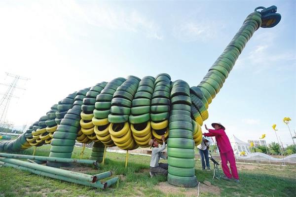 輪胎雕塑的投入成本可大可小,如果僅是單純的裝飾作用,輪胎成本極低,自行購入輪胎做一些外部處理,如防水油漆繪畫、造型搭建等,輪胎高端的玩法就是搭建成大型雕塑,打造藝術(shù)品,這就需要專業(yè)的廠家進(jìn)行制作,不過這類雕塑可以做獨(dú)景使用。