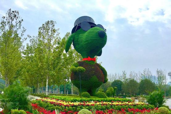 第一種,摹擬。摹擬就是模仿現(xiàn)成的樣子。在綠雕設(shè)計(jì)和綠雕主題表達(dá)中,摹擬是一種直接的、簡(jiǎn)單的表達(dá)方式,基本上是對(duì)真實(shí)事物的模仿和縮放。比如,我們想要在綠雕中表達(dá)自然主題,可以直接采用山脈、河流的樣子;想要在綠雕中表達(dá)動(dòng)物主題,可以直接制作出大象、孔雀、猴子等具體的動(dòng)物形象;想要在綠雕中表達(dá)動(dòng)畫(huà)主題,可以直接應(yīng)用已有的經(jīng)典動(dòng)畫(huà)形象等等。在綠雕主題表達(dá)時(shí)使用摹擬手法能讓人們一眼看到熟悉的事物和形象,更直觀更清晰地了解主題。