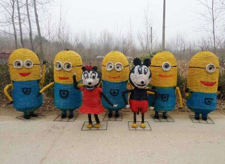 江蘇龍君展覽服務有限公司 特別為農家樂基地 旅游景區 山莊等推出稻草人系列作品 品種有:動物系列 人物系列 熊出沒系列 小黃人系列 海綿寶寶系列 黑貓警長系列
