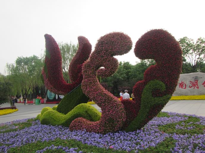 花卉立體造型又稱立體花壇、主體花壇,即花卉打破高度限制向空間伸展,具有豎向景觀,主要以四面觀賞為主。它是一種運用花卉的群體效果構成圖案的式樣,觀賞花卉絢麗風姿的花卉應用形式,主要包括造型花壇、標牌花壇等形式。造型花壇是用模紋花壇的手法,運用五色草和其他草本花卉制咸的各種造型物,例如:動物、花球、花柱、雕塑、花籃、花瓶、花拱等;標牌花壇是用花卉或其他植物材料組成的豎向牌式花壇,多為一面觀賞。花卉立體造型的手法包括蟠扎、毛氈栽植,以及盆花鑲嵌等。