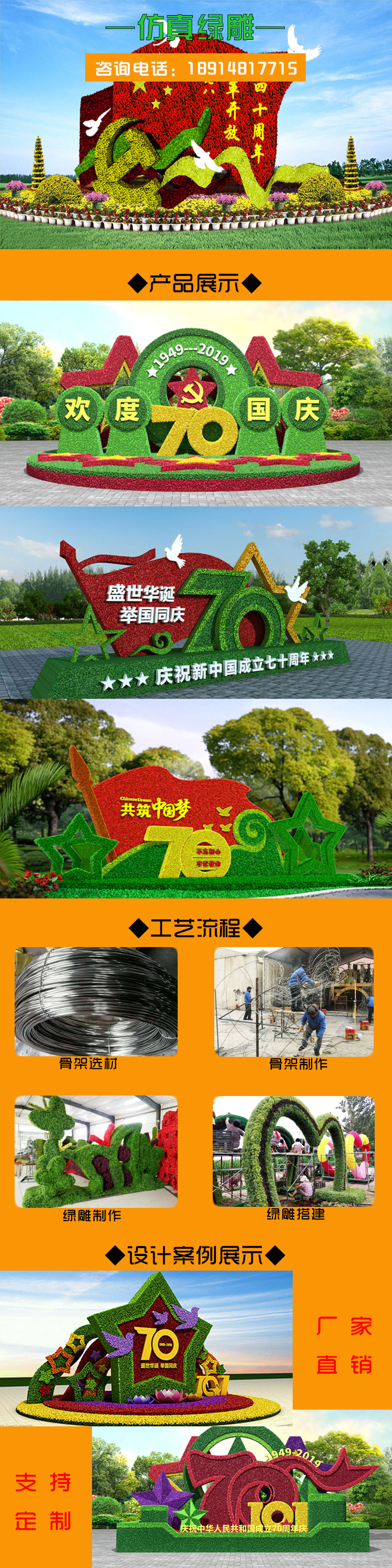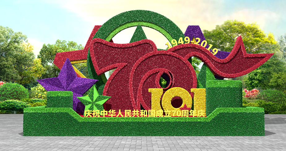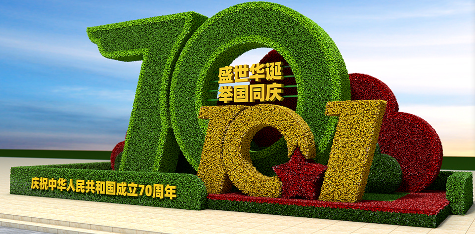 今年是建國(guó)七十周年,公司研發(fā)團(tuán)隊(duì)設(shè)計(jì)出一系列綠雕造型,為國(guó)慶城市綠化做準(zhǔn)備